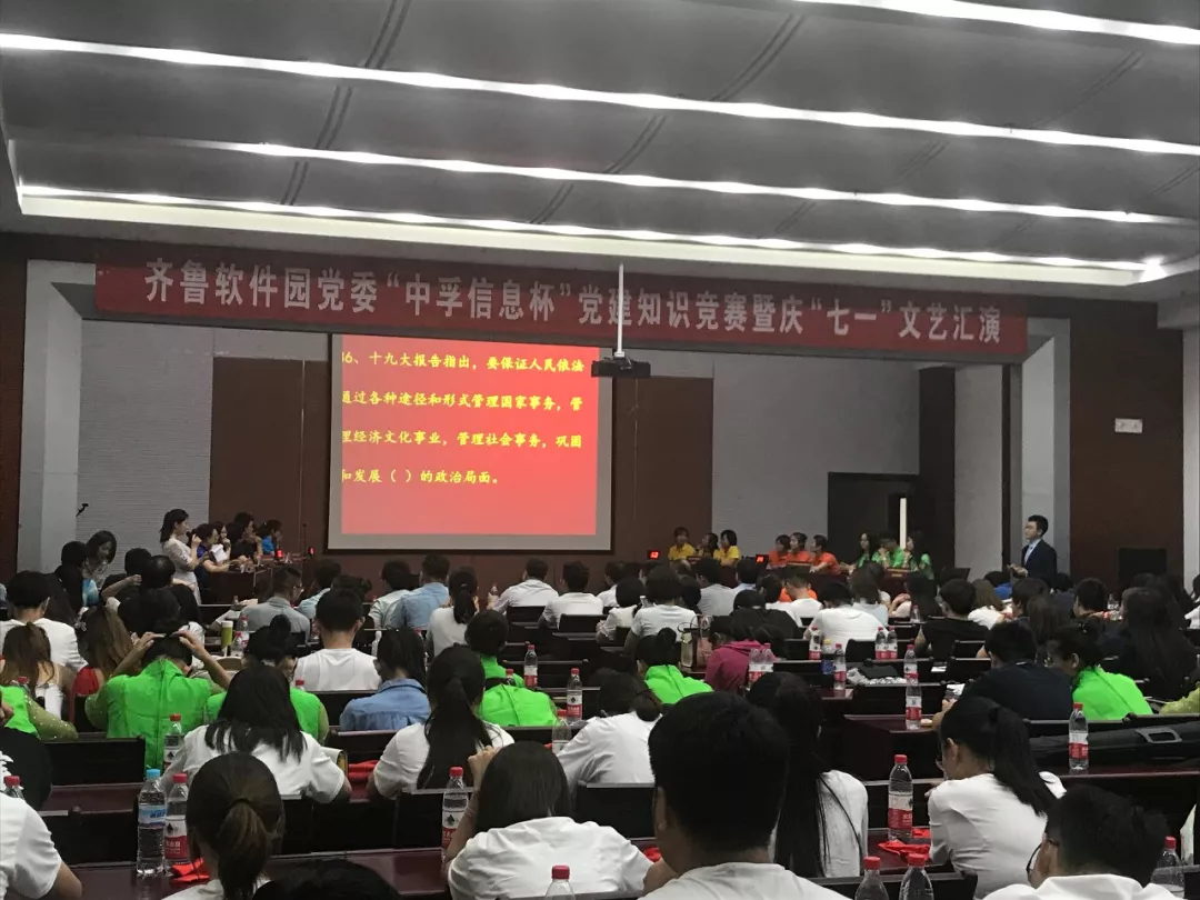 为庆祝中国共产党成立97周年,深入推进党的十九大精神学习,2018年6月30日下午,银河集团(galaxy)党总支响应齐鲁软件园党委号召,组织并参与了“银河集团(galaxy)杯”党建知识竞赛暨庆“七一”文艺汇演活动,为党的97岁华诞献礼。园区企业联合党委下属企业党组织成员、党建指导员等200余人参加了此次活动。